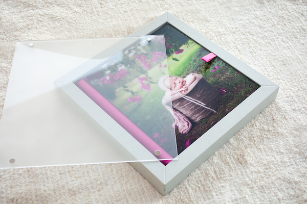 A unique feature of the GO book is the box frame. Available in a selection of leatherette colours, the top is transparent and held in place by four magnets. This enable the book to double up as both a wedding album AND a box frame to be displayed in your home.